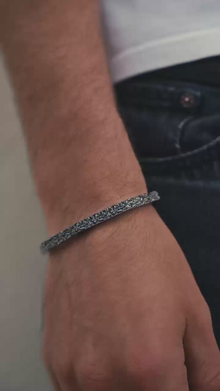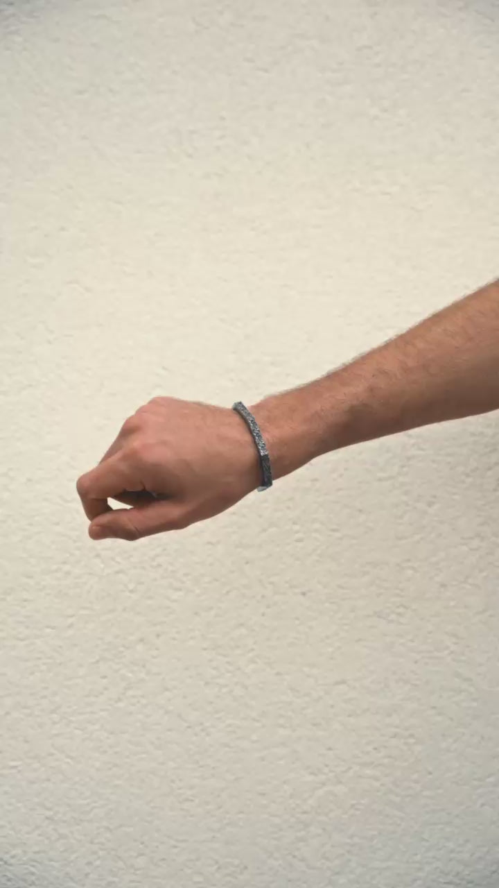 Il bracciale Domen presenta una forma essenziale e scultorea. Le linee irregolari e i profili sfaccettati creano un equilibrio tra geometria e spontaneità. Le superfici alternano texture ruvide e lisce, dando vita a un design contemporaneo e organico che si adatta naturalmente al polso.